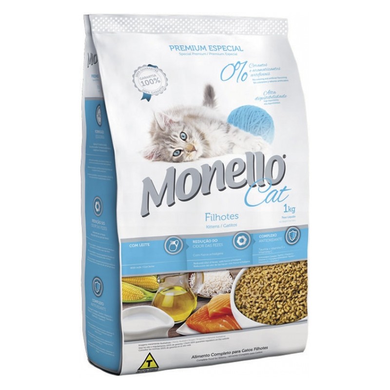 Monello Cat Gatitos Salmón y Pollo es libre de colorantes y aromatizantes artificiales. Conserva su receta original, con la adición de harina y aceite de salmón, ingredientes nobles y de excelencia que actúan en las defensas del organismo y proporcionan a los felinos un desarrollo cognitivo sano. Además de las proteínas de calidad, la fórmula posee levadura de cerveza y manano-oligosacáridos (MOS), prebiótico que actúa en la salud intestinal al asegurar la máxima absorción de los nutrientes, lo cual genera un excelente aprovechamiento del producto y ayuda en la higiene de los ambientes internos, ya que reduce el volumen y el olor de las heces.