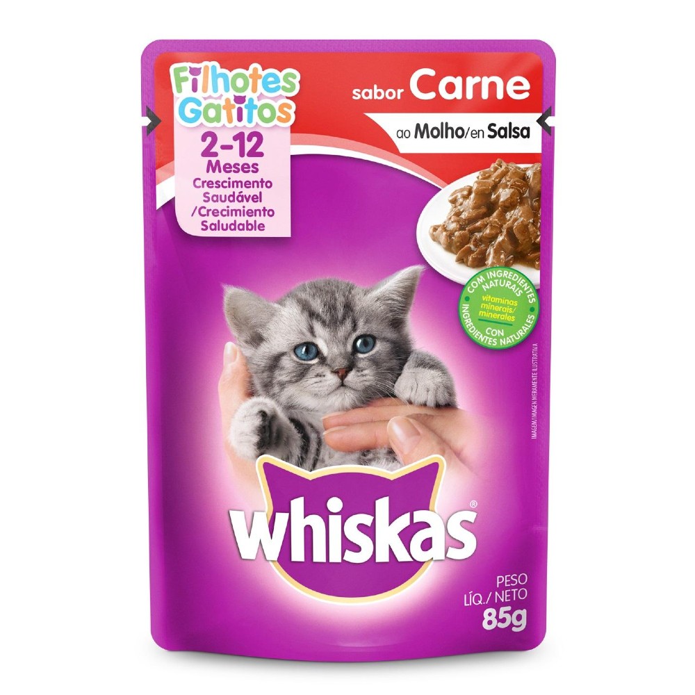 Whiskas Pouch Gatito Sabor Carne es alimento húmedo nutricionalmente completo y balanceado. Elaborado a base de exquisitos trocitos de carne cocidos al vapor en una deliciosa salsa. CON PROTEÍNAS DE ORIGEN ANIMAL DE ALTA CALIDAD proporcionando los nutrientes que tu gatito necesita todos los días para estar saludable